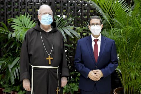 La Habana, 8 de septiembre de 2021.- El Ministro de Relaciones Exteriores de Cuba, Bruno Rodríguez Parrilla, intercambió este miércoles con el Cardenal estadounidense Sean Patrick O´Malley, Arzobispo de la Arquidiócesis de Boston, quien se encuentra de visita en Cuba. El Canciller cubano agradeció los pronunciamientos de la Conferencia de Obispos católicos de los Estados Unidos que, en más de una ocasión, se ha expresado a favor de la mejoría de las relaciones bilaterales con Cuba. Ofreció a Su Eminencia una actualización de la situación y los planes de Cuba en diversas esferas, los resultados positivos de las vacunas cubanas y abordó el impacto negativo del bloqueo económico del gobierno de los Estados Unidos, recrudecido precisamente en el contexto de la pandemia de Covid19. Acompañó al Cardenal O´Malley, Giampiero Gloder, nuncio apostólico de Su Santidad en Cuba. Participaron, además, Caridad Diego Bello, jefa de la Oficina de Atención de Asuntos Religiosos del Comité Central del Partido Comunista de Cuba, y Carlos Fernández de Cossío, director general de Estados Unidos del Ministerio de Relaciones Exteriores. (Cubaminrex)