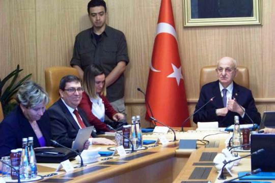 Acompañando al ministro se encontraban el Director de Europa y Canadá del Ministerio de Relaciones Exteriores de Cuba, Elio Rodríguez Perdomo, el Embajador de Cuba en Turquía, Alberto González Casals, y la Embajadora Bárbara Elena Montalvo, Jefa de la Secretaría del canciller.