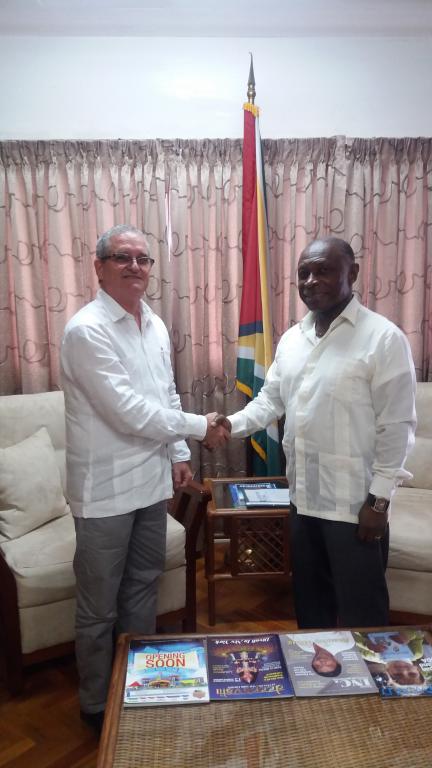 Guyana. 2 de marzo de 2017. El Ministro de Asuntos Exteriores y Segundo Vicepresidente de Guyana, Honorable Carl Barrington Greenidge recibió en la tarde del miércoles al embajador cubano Julio César González Marchante, en su despacho de la Cancillería local.