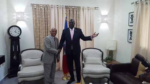 Puerto Príncipe 12 de noviembre 2018. El Sr. Bocchit Edmond, Ministro de Relaciones Exteriores y de Cultos de la República de Haití recibió al Embajador cubano Luis Castillo Campos, en sus oficinas de la cancillería local, con quien intercambió sobre diversos temas de interés bilateral.