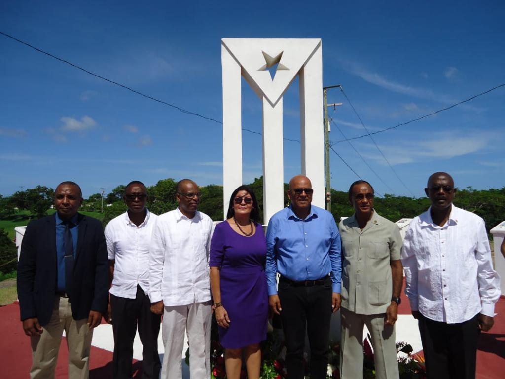 St. George´s, 25 de octubre de 2019. Cubanos y granadinos acudieron al Memorial situado en la entrada del Aeropuerto Internacional Maurice Bishop, para rendir homenaje a los 24 internacionalistas Cubanos caídos durante la invasión de Estados Unidos a Granada, hace 36 años.