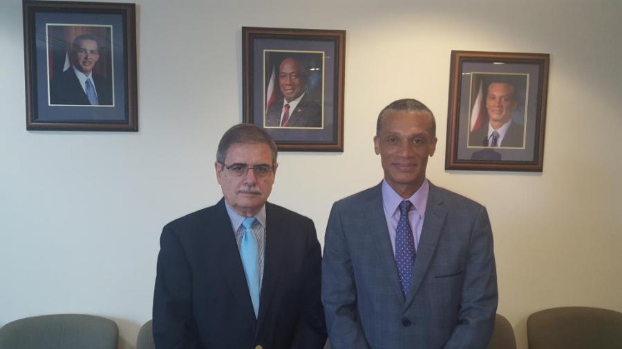 Puerto España, 12 de abril. -El Honorable Senador y Ministro de Asuntos Exteriores y CARICOM de Trinidad y Tobago, Dennis Moses, recibió a S.E. Guillermo Vázquez Moreno, embajador de Cuba en la sede de la Cancillería. El encuentro fue propicio para pasar revista a importantes temas de la agenda bilateral.