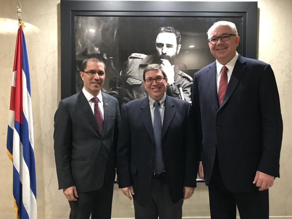 Acompañaron al Canciller venezolano, los compañeros Manuel Moncada Acosta y Rodolfo Sanz, viceministros de Relaciones Exteriores para América del Norte y América Latina respectivamente; y Rafael Ramírez, Representante Permanente de Venezuela ante las Naciones Unidas. Por la parte cubana, estuvieron presentes Anayansi Rodríguez Camejo, Representante Permanente de Cuba ante la ONU, y Rodolfo Reyes Rodríguez, director general de Asuntos Multilaterales y Derecho Internacional del Ministerio de Relaciones Exteriores.