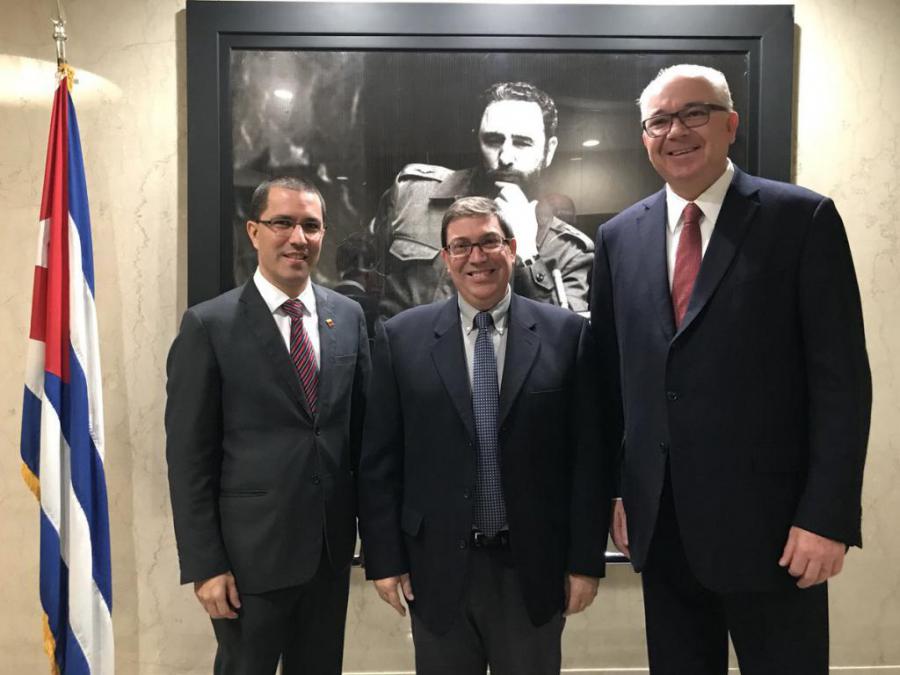 Nueva York, 30 de octubre de 2017.El ministro de Relaciones Exteriores Bruno Rodríguez Parrilla y el compañero Jorge Arreaza Monserrat, ministro del Poder Popular para Relaciones Exteriores de Venezuela, sostuvieron un fraternal encuentro en horas de la tarde de hoy 30 de octubre, en Nueva York.