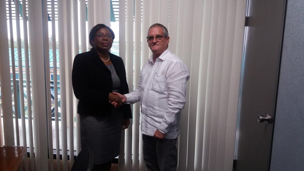 Guyana, 3 de marzo de 2017. Valerie Alleyne Odle y Jhonson Alexandre, funcionarios de la Oficina del Asistente del Secretario General para las Relaciones Exteriores y de la Comunidad recibieron al representante de Cuba ante la Comunidad Caribeña CARICOM, Embajador Julio César González Marchante, en la sede de la organización.