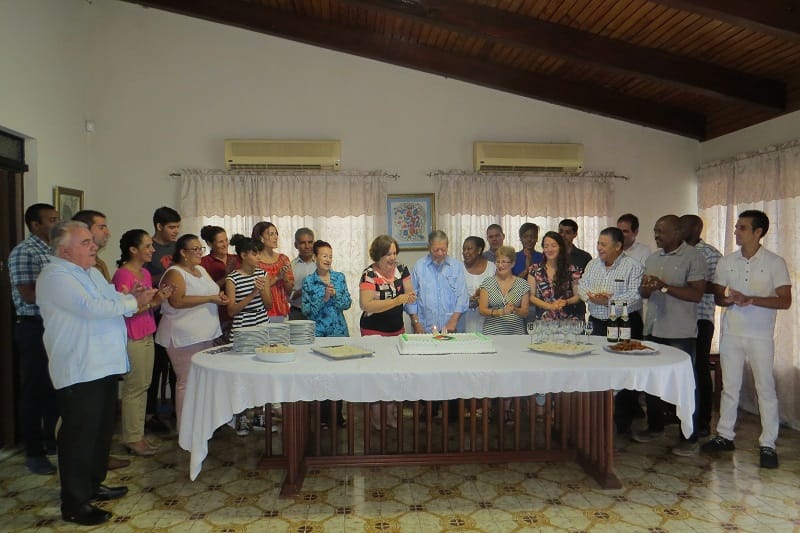 La Embajadora Milagros C. Soto Agüero, junto a los compañeros de la misión dio la bienvenida al Comandante Delio, destacado luchador del ejército rebelde, cuyos méritos le permitieron llegar a ser el segundo al mando de la Columna No. 1 José Martí, dirigida por Fidel Castro y luego formar parte de la expedición organizada en Cuba en 1959 para derrocar la dictadura de Trujillo en República Dominicana.