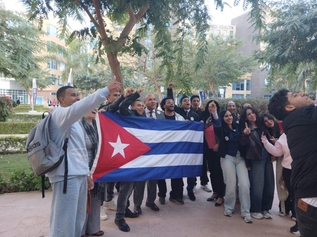 El Cairo, 9 de diciembre de 2025. Estudiantes y profesores de la Facultad de Español de la Universidad Badr de El Cairo celebraron el día de Cuba con la presencia del embajador cubano en El Cairo, Alexander Pellicer Moraga y otros funcionarios de la Embajada. Los diplomáticos cubanos dialogaron con profesores y estudiantes sobre la cultura, la historia y las tradiciones de la nación caribeña.