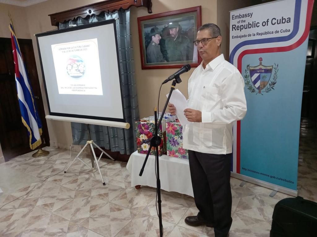 Belmopán, 10 de octubre del 2023.- La misión diplomática de Cuba en Belice, fue la sede del acto político cultural por el 155 aniversario del inicio de nuestras guerras por la independencia y por la jornada de la Cultura Cubana.