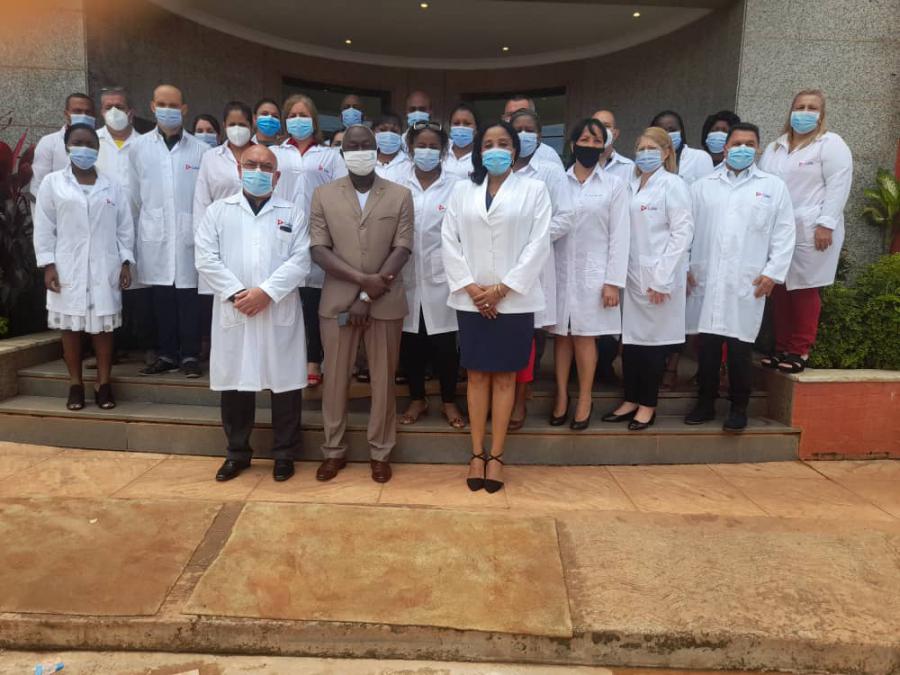 Con particular énfasis reconoció el desempeño del Contingente en el enfrentamiento a la COVID-19 como pandemia, cuya presencia ha llegado a 35 Estados en cinco meses, han atendido a más de 300 mil personas y salvado más de 9 mil vidas, participando más de 3 mil 700 profesionales cubanos de la salud en 46 brigadas constituidas para el enfrentamiento a la enfermedad. En África particularmente, 10 brigadas médicas han atendido a más de 38 mil personas en igual cantidad de países, entre ellos Guinea Bissau, enfatizando de forma especial los resultados del trabajo asistencial de la Brigada, que junto con el personal de la salud guineense enfrenta la pandemia y han atendido a más de 5 mil pacientes en diferentes hospitales y centros de salud y salvado 76 vidas, en sus dos primeros meses de trabajo.