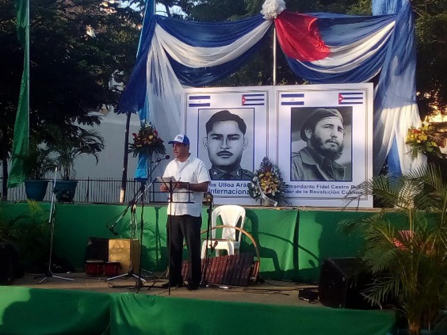 La jornada inició con un conversatorio en el Instituto “Carlos Ulloa”, en Masaya. El acto central se realizó en el parque de la ciudad, con una ofrenda floral al mártir nicaragüense, seguido de representaciones de la cultura local.