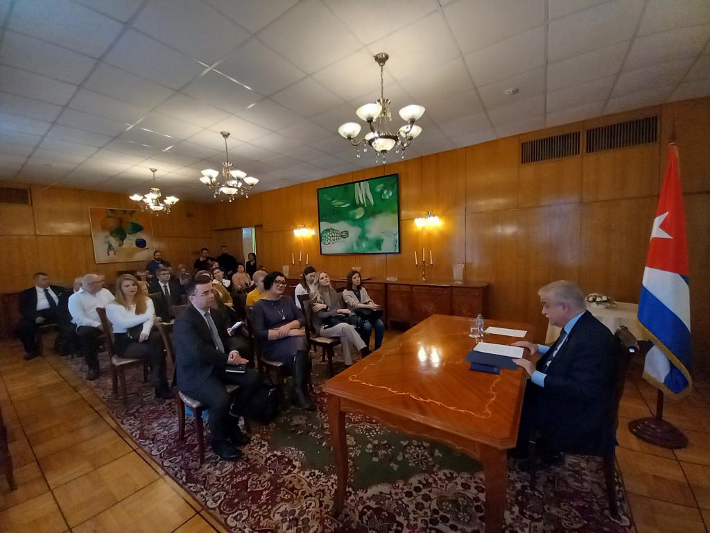 Asimismo Garmendía Peña ofreció una panorámica del estado actual de las relaciones bilaterales entre Rusia y Cuba, y comentó acerca de las perspectivas del intercambio económico, comercial, científico, educativo y cultural.