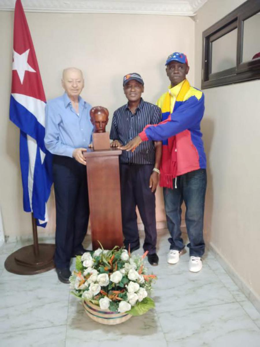 El Sr. Hussein Ali Jawad, Cónsul honorario de Siria, el Sr. Yaya Conteh y Alimamy Bakarr Sankoh a nombre de los miembros de solidaridad con Cuba y de los graduados colocaron una ofrenda de rosas blancas ante el busto de José Martí en la Embajada.