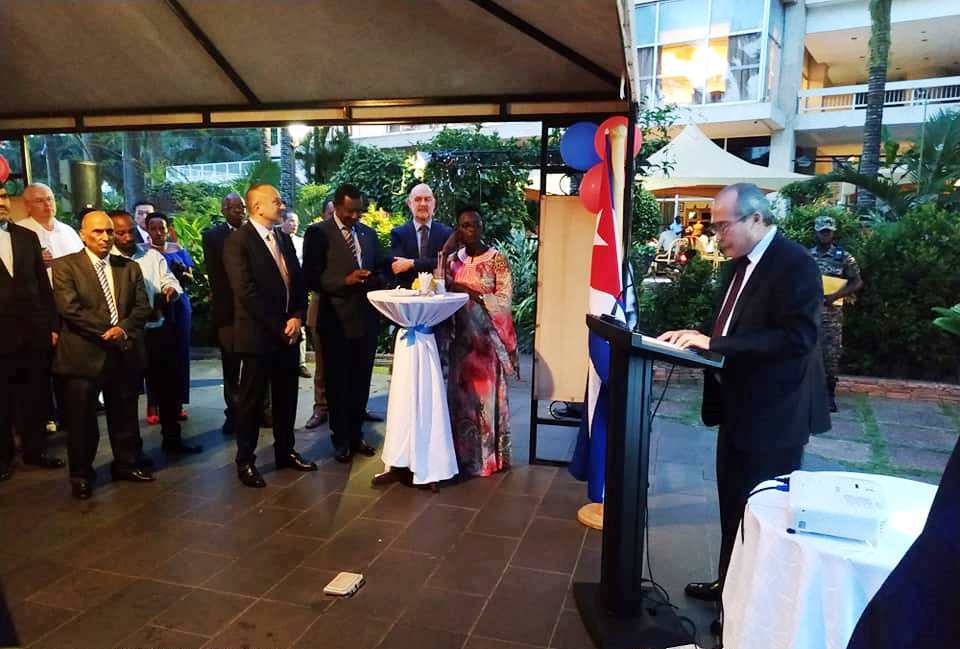 El diplomático cubano denunció los daños causados por el injusto y cruel bloqueo económico, comercial y financiero impuesto por los Estados Unidos contra Cuba durante casi seis décadas, al tiempo que exhortó a la comunidad internacional, a través de sus jefes de misiones y funcionarios diplomáticos presentes, a mantener su respaldo al pueblo cubano en su lucha contra el criminal cerco económico más largo de la historia. Igualmente condenó la escalada de presiones y acciones del gobierno de los Estados Unidos contra Venezuela y pidió a los pueblos y gobiernos del mundo a defender la paz y detener, por encima de diferencias políticas o ideológicas, una nueva intervención militar imperialista en América Latina y el Caribe por el antecedente negativo y nefastas consecuencias que pudiera tener a nivel global. Asimismo, llamó a aplicar y defender los principios de la Proclama de América Latina y el Caribe como Zona de Paz y agradeció al pueblo y Gobierno ugandeses por su tradicional apoyo a la lucha del pueblo cubano contra la obsoleta y fracasada política estadounidense de  bloqueo contra Cuba.