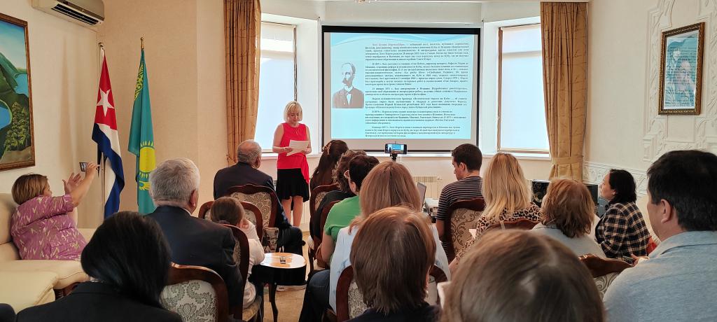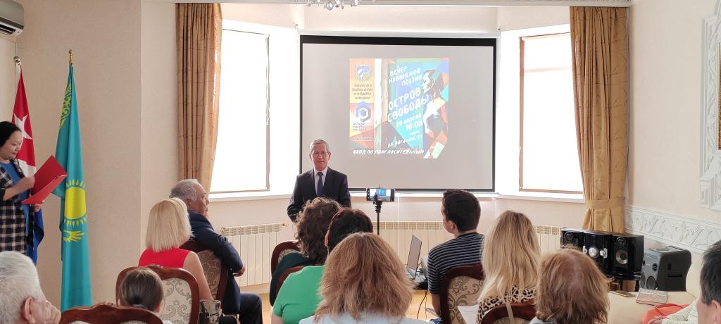 Astaná, 29 de abril de 2023. Con la presencia de miembros de la Asociación Creativa “AVANGARD”, el Colegio Superior “Astana Polytechnic”, y la Asociación de Amistad Kazajstán-Cuba, se celebró en la embajada cubana en esta capital una velada de poesía cubana, dedicada al 31 aniversario del establecimiento de las relaciones diplomáticas entre Cuba y Kazajstán.
