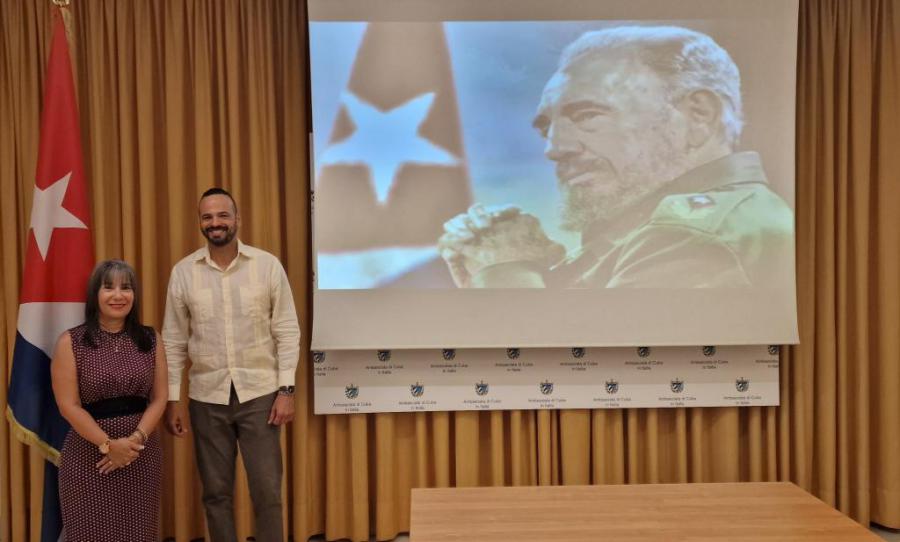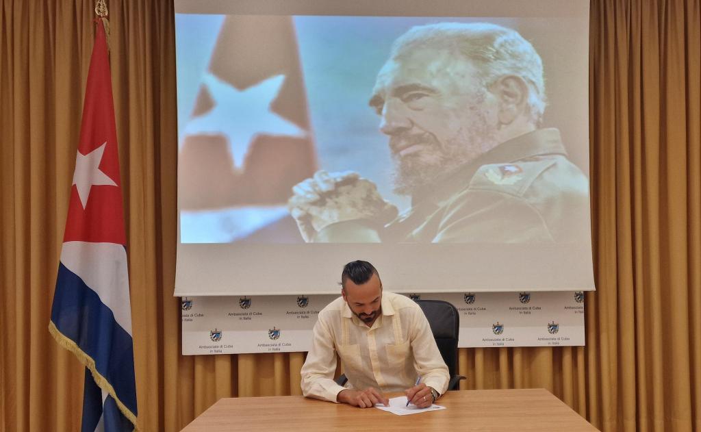 Roma, 30 de agosto de 2024.- En ceremonia solemne en la Embajada de Cuba en Italia el Cónsul General en Milán, Marcos Hernández Sosa, firmó del Código de Ética de los Cuadros de la Revolución cubana en presencia de la Embajadora Mirta Granda Averhoff y el colectivo de la Misión estatal.