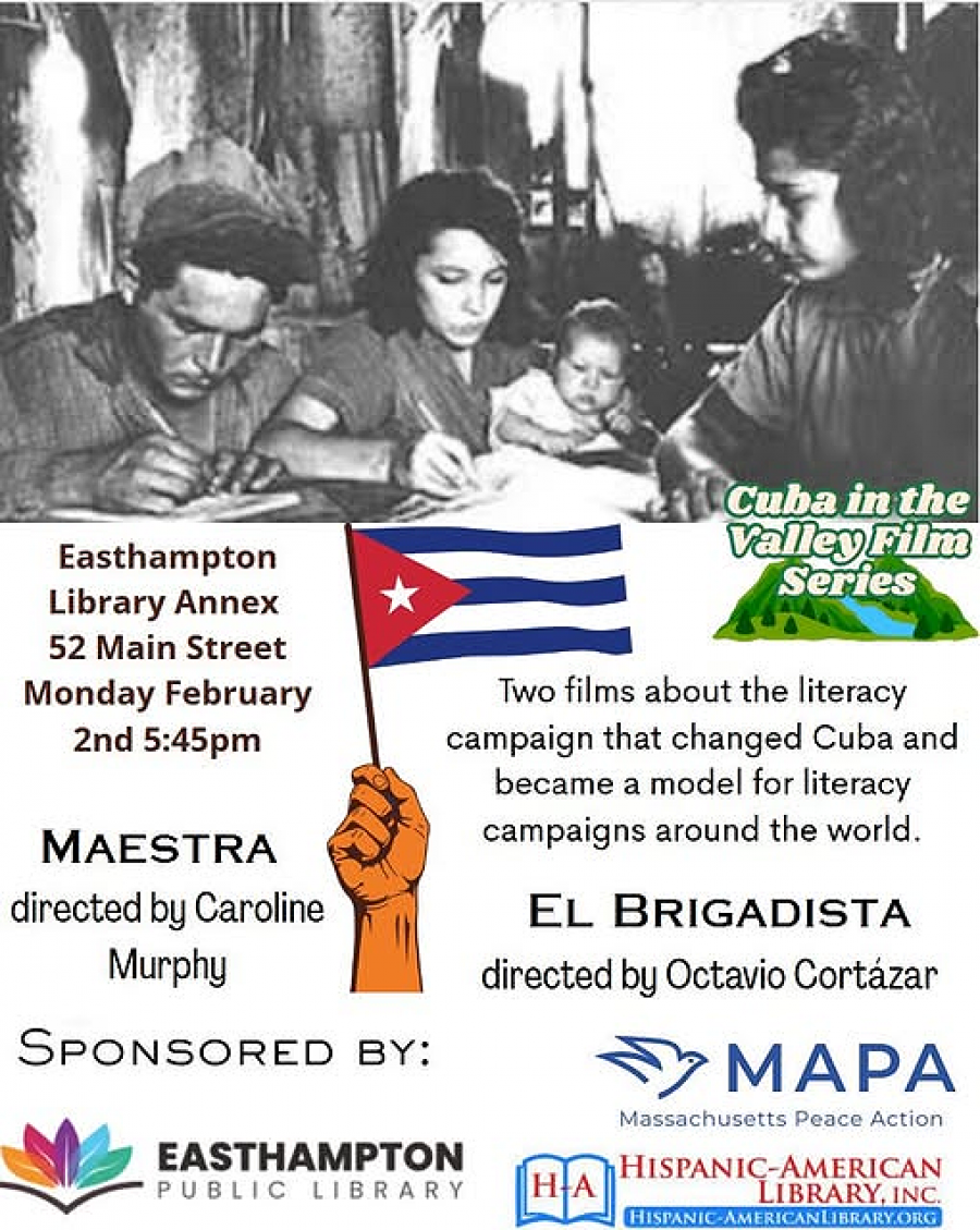 El próximo 2 de febrero, la Biblioteca Anexa de East Hampton, acogerá la proyección de los filmes “El Brigadista” y “Maestra”, dos obras audiovisuales que profundizan en las vivencias humanas y sociales del proceso de alfabetización cubano.