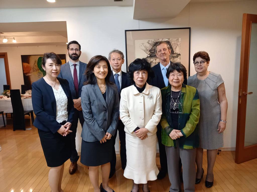 En el encuentro, que tuvo lugar para felicitar a la gran amiga de Cuba Ito Naoko y Presidenta del Grupo SHITSUKE por su contribución a la amistad con nuestro país, también participó Takizaki Shigeki, Subsecretario General de la Secretaría de Seguridad Nacional y la Dra. Mari Kiuchi. (Cubaminrex - Embacuba Japón)