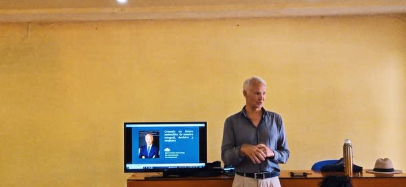 En el centro de este trabajo conjunto, se encuentra el profesor Hans-Peter Benedick, quien durante la pasada semana impartió talleres sobre gestión de proyectos y sobre economía sostenible e inclusiva ajustada a la realidad cubana, en los cuales compartió experiencias de cooperación como proyectos de energías renovables en Sancti Spíritus y en Ecuador. Una de sus presentaciones incluyó el uso de un avatar generado por inteligencia artificial, con el que motivó a jóvenes en formación, líderes científicos, investigadores y profesores a sumarse a la gestión de proyectos.