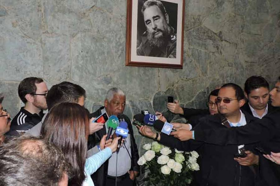 Cubanos residentes aquí, defensores de derechos humanos, integrantes de organizaciones colombianas de solidaridad y otros amigos de la isla rindieron homenaje hoy a Fidel Castro en la embajada de la Isla en esta capital.