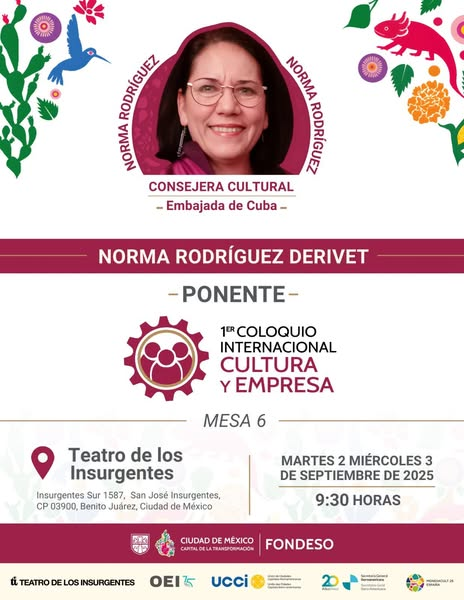 Ciudad de México.- La Embajada de Cuba en México participó en el 1er Coloquio Internacional Cultura y Empresa, organizado por el Fondo para el Desarrollo Social de la Ciudad de México (FONDESO), un espacio clave en el camino hacia MONDIACULT 2025.