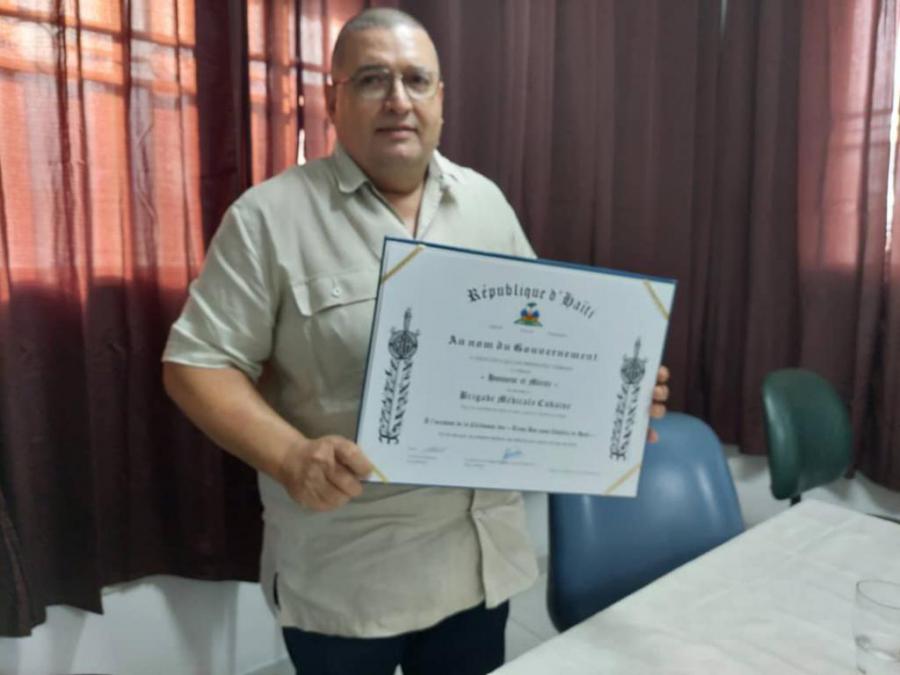 La Brigada Médica cubana, recibió un reconocimiento por haber contribuido a la lucha contra el Cólera en Haití.