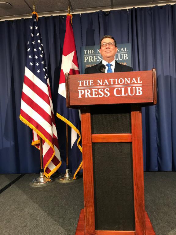 CUBA, 3 de noviembre de 2017.- El canciller cubano, Bruno Rodríguez Parrilla, denunció ante la prensa internacional (en el Club Nacional de Prensa de Washington) los pretextos de naturaleza política empleados por Estados Unidos para retrotraer las relaciones entre los dos países a la época de confrontación.