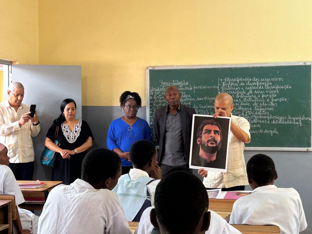 Una representación de la Embajada de Cuba en Angola asistió en el día de hoy a la escuela secundaria ¨Che Guevara¨, ubicada en un modesto barrio de la capital angolana, para conmemorar un aniversario más del nacimiento del Guerrillero Heroico.