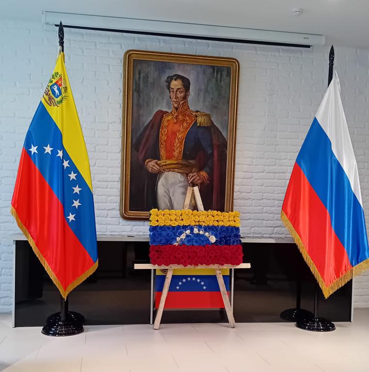 Moscú, 5 de julio. En la sede de la Embajada de la República Bolivariana de Venezuela en la Federación de Rusia, tuvo lugar en la mañana de hoy, una ofrenda floral ante el busto del Libertador Simón Bolívar en esa Misión Diplomática, en ocasión de celebrarse el 212 aniversario de la Firma del Acta de Independencia.