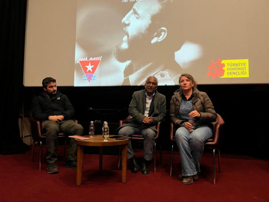 Al evento asistieron como oradores el Embajador de la República de Cuba en Ankara, Dr. Alejandro F. Díaz Palacios, el miembro del Comité Central del TKP, Berkay Kemal Önoğlu, y la presidenta de la Asociación de Amistad Cuba-Türkiye, Nahide Özkan.