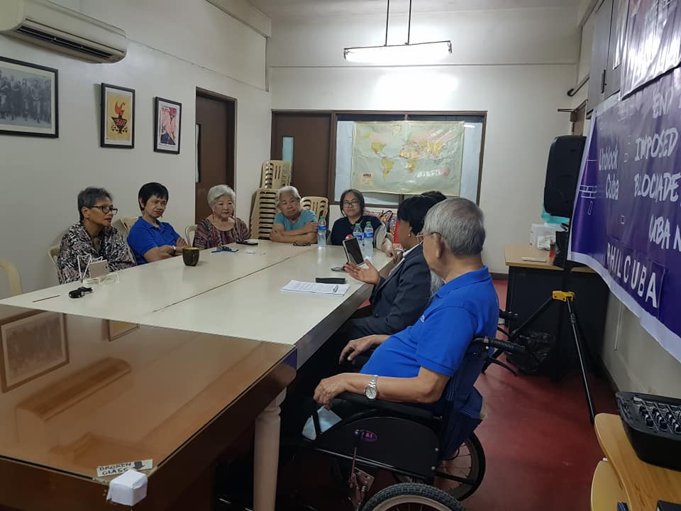 Manila, 25 de octubre de 2019.- El ejecutivo de la asociacion de Amistad Filipinas-Cuba "PHILCUBA", presidida por el ex rector de la Universidad de Filipinas, Dr. Francisco Nemenzo, condenó este jueves el bloqueo de Estados Unidos contra Cuba, en ocasión de un encuentro con la embajadora, Ibete Fernández Hernández.