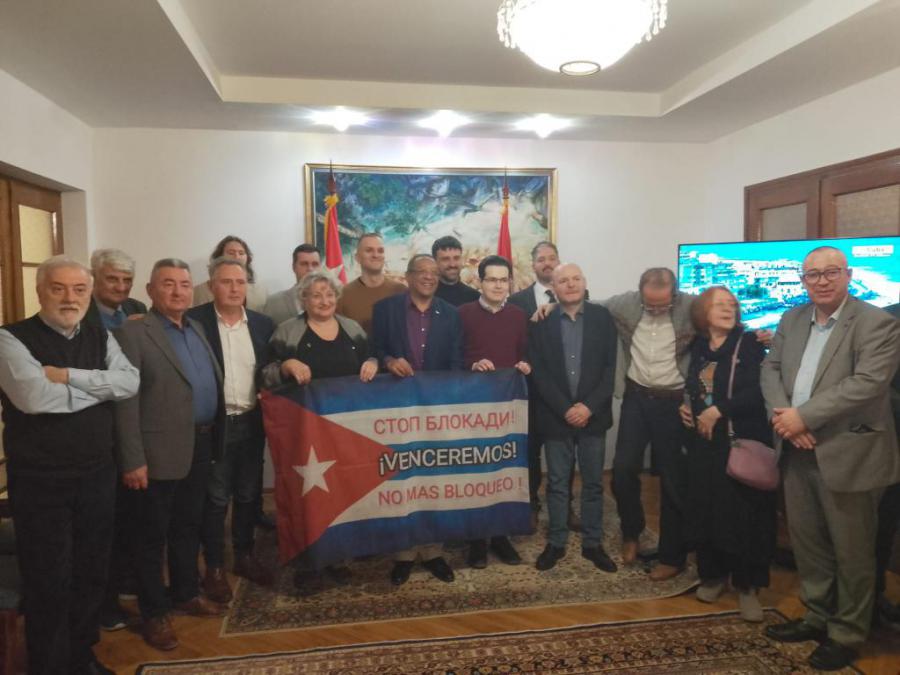 En encuentro de trabajo para conocer de primera mano la actual situación en la isla a cargo del embajador cubano en la nación balcánica, Pavel Orencio Díaz Hernández,  y el creciente peligro que para su supervivencia económica representan las más recientes acciones, los representantes de las fuerzas políticas y grupos de solidaridad expresaron el más enérgico rechazo al desmedido y genocida acoso contra el noble pueblo cubano, prueba de la más vil y obcecada obsesión por destruir una pequeña nación, cuyo único delito ha sido construir un proyecto social propio a tan solo 90 millas náuticas de los EEUU.