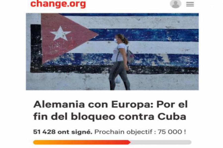 Berlín, 22 de julio de 2020.- Más de 50 mil firmas respaldan este martes una iniciativa impulsada por artistas y académicos alemanes para exigir el fin del bloqueo económico, comercial y financiero impuesto por Estados Unidos a Cuba desde hace casi seis décadas.