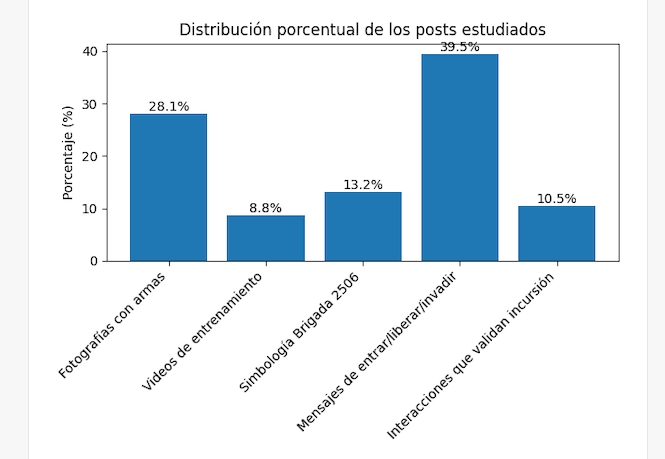 Parte del material audiovisual previo a la incursión permanece aún visible en Facebook e Instagram, lo que plantea interrogantes no solo sobre la dimensión política del hecho, sino sobre la arquitectura de moderación y responsabilidad de las plataformas digitales. El Observatorio de Medios de Cubadebate ha analizado 114 posts en esas plataformas publicados por los implicados en el intento de infiltración, e incluye también los generados de manera reactiva por la comunidad que interactuó directamente con ellos. Los perfiles estudiados pertenecen a las personas mencionadas en el listado de los presuntos atacantes, que proporcionaron las autoridades cubanas el 26 de febrero de 2026.