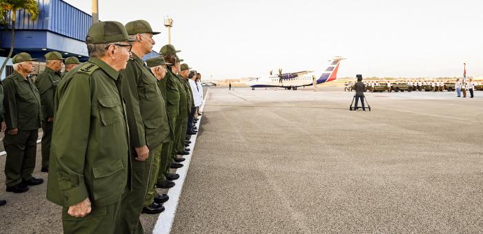 La Habana, 15 de enero--Encabezado por el General de Ejército Raúl Castro Ruz, Líder de la Revolución Cubana, y por el Primer Secretario del Comité Central del Partido y Presidente de la República, Miguel Díaz-Canel Bermúdez, se realizó el Primer Homenaje a los Héroes Caídos en el Aeropuerto José Martí.Cuba honra y recibe los restos mortales de los 32 combatientes asesinados por EE.UU. en la agresión a Venezuela.