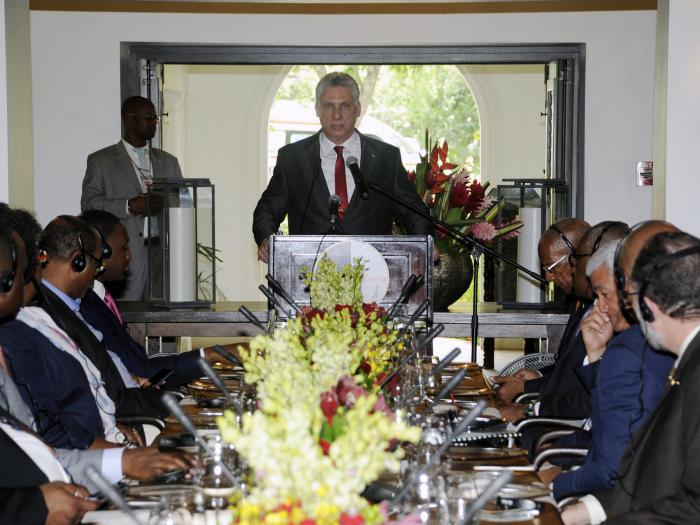 Me honra transmitirles el fraternal mensaje de amistad y solidaridad del compañero Raúl Castro Ruz, Primer Secretario del Comité Central del Partido Comunista de Cuba, y reiterarles el invariable compromiso que él les dejó el pasado mes de diciembre en la VI Cumbre Caricom-Cuba, celebrada en Antigua y Barbuda, al afirmar que «el Caribe siempre podrá contar con la eterna amistad, gratitud y el apoyo de Cuba».