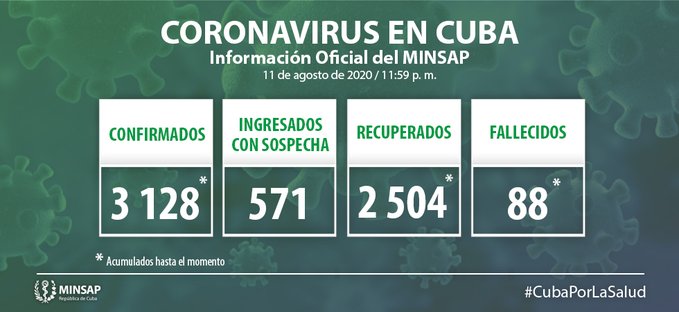 - Ciudadana cubana de 43 años residente en el municipio Diez de Octubre, provincia La Habana. Contacto de caso confirmado anteriormente. Se mantienen en vigilancia 11 contactos.