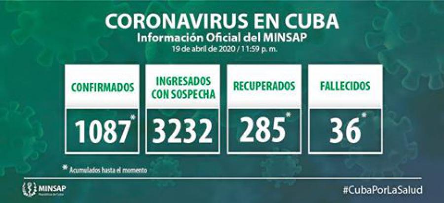 #Cuba #COVID19 Parte de cierre del día 19 de abril de 2020