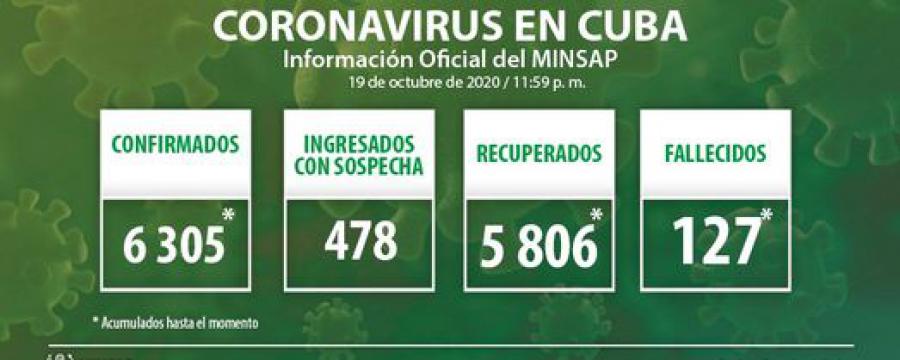 Para COVID-19 se estudiaron 6 mil 699 muestras, resultando 47 muestras positivas. El país acumula 756 mil 623 muestras realizadas y 6 mil 305positivas (0,83%).Por tanto, al cierre del día de ayer se confirman 47 casos nuevos, con un acumulado de 6 mil 305 en el país. Los 47 casos diagnosticados son cubanos y autóctonos.