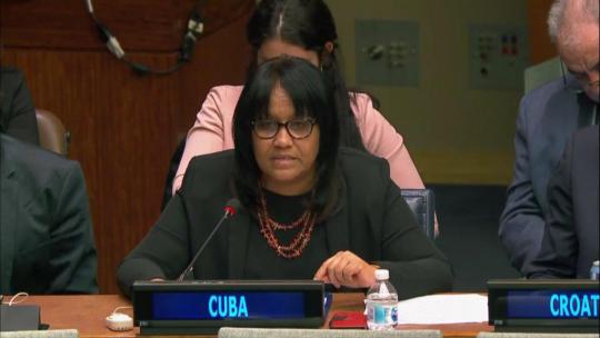 NUEVA YORK, 20 de octubre de 2017. - Durante su intervención en el Debate General de la Cuarta Comisión de las Naciones Unidas sobre las cuestiones relativas a la Información, la embajadora cubana Anayansi Rodríguez Camejo, demandó el cese de las agresiones radioelectrónicas de los Estados Unidos contra la isla, destacando que hasta julio de 2017, las transmisiones ilegales ascendieron a 1 890 horas como promedio.