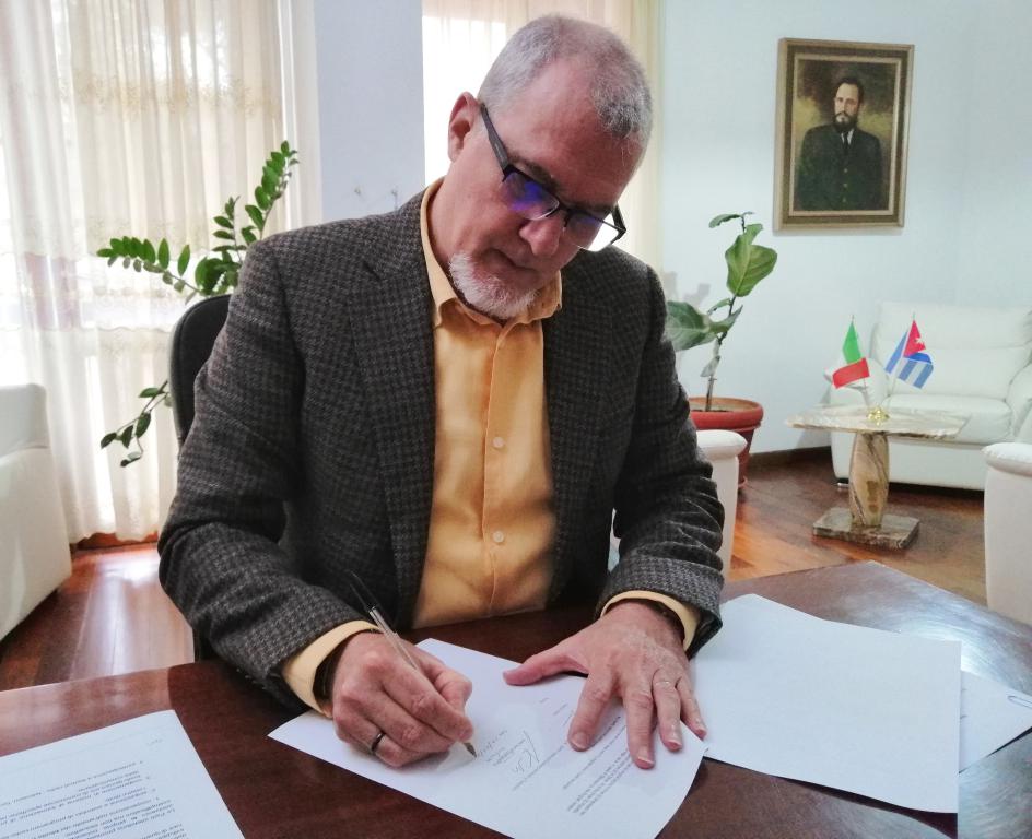 L'Ambasciatore cubano Rodriguez Ruiz ha firmato il Memorandum a nome del presidente dell'ICRT, Alfonso Noya Martínez.
