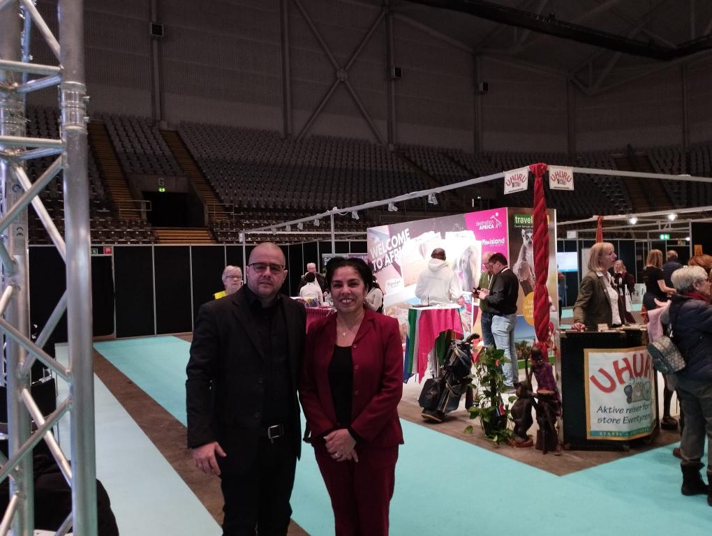 Oslo, 15 de enero de 2024. Maité Rivero Torres, embajadora de Cuba en el Reino de Noruega, y Eddy Santos González, consejero para temas de turismo en la región nórdica -con sede en la Embajada de Cuba en Estocolmo-, asistieron a la Feria TravelXpo 2024, que tuvo lugar del 12 al 14 de enero, en Telenor Arena, en esta ciudad.