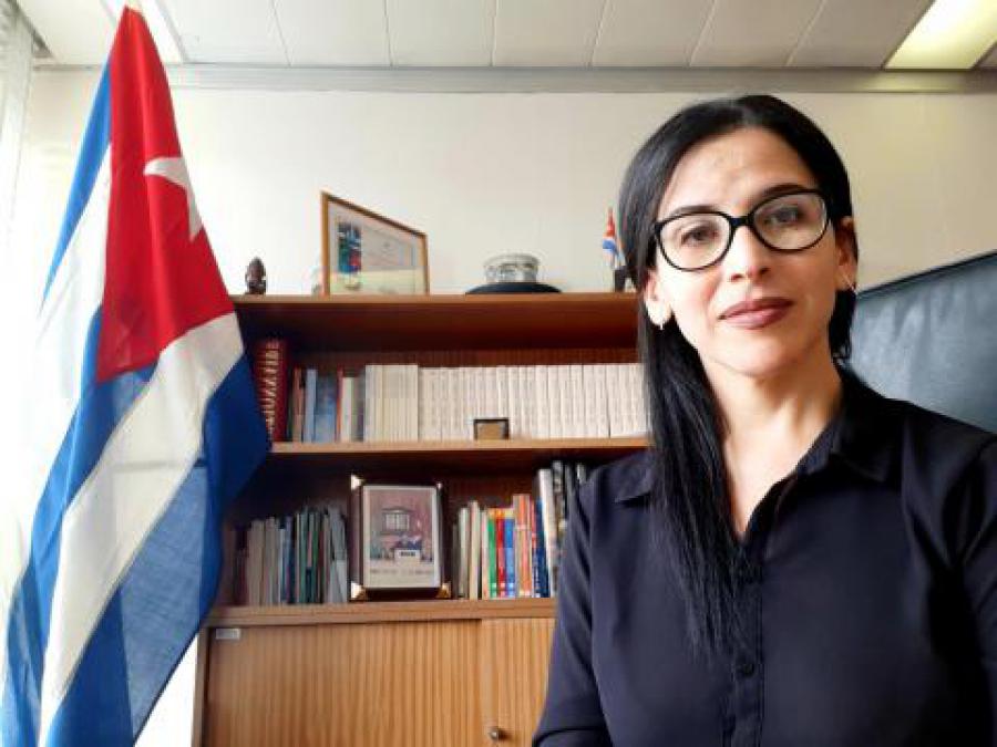 Intervención en el foro virtual convocado por la UNESCO “Impactos y desafíos de la Pandemia de la COVID-19 en América Latina y el Caribe” de la Embajadora de Cuba ante la UNESCO, Msc. Yahima Esquivel Moynelo, presidenta del Grulac-Unesco. 10 de septiembre de 2020.