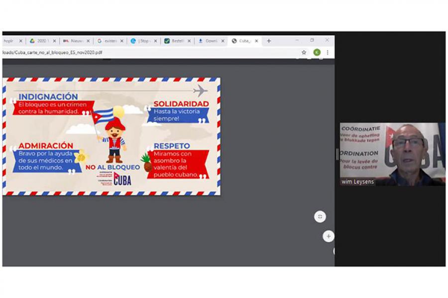 Bruselas, 18 noviembre de 2020/ Representantes de diversos sectores de la sociedad belga abordaron las consecuencias del bloqueo estadounidense contra Cuba, en un foro virtual en el que condenaron esa política y anunciaron una nueva campaña de solidaridad.