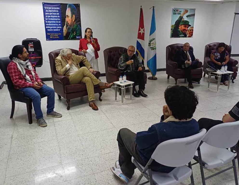 Resaltó la justicia social alcanzada tras el triunfo de 1959 con las transformaciones sociales, reforma agraria, urbana, campaña de alfabetización, educación y salud gratuitas, entre otras. Garcés instó a entrar en profundidad a analizar y comprender el papel del imperialismo norteamericano en el continente, así como a organizar las maneras de respaldo a la isla en esta etapa complidada. La graduada de la Escuela Latinoamericana de Ciencias Médicas de La Habana Alma Zacarías expuso, por su parte, su historia de cómo llegó a Cuba con 17 años, específicamente desde el Valle del Palajunoj, pueblo originario del altense departamento de Quetzaltenango.