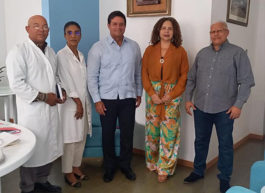 El Embajador de Cuba, Turcios Miguel Esquivel López, realizó una visita oficial a la isla de San Vicente, acompañado por la Tercera Secretaria, Laura Martínez Galindo, y el Coordinador Jefe Nacional de la Misión Médica, Dr. Noslando Ramos González. Como parte de su agenda, el Embajador sostuvo un encuentro con el equipo directivo del Hospital Central "Baptista de Sousa", donde se dialogó sobre los retos y oportunidades en la atención médica de la isla. Durante la reunión, se reconoció el papel fundamental que desempeña la brigada médica cubana en el fortalecimiento del sistema de salud local y se reiteró la voluntad de seguir trabajando conjuntamente en beneficio de la población.