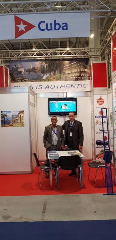 București, 17 noiembrie. Prezența Cubei la Târgul de Turism din București a fost distinsă ca destinație turistică de excelență pentru istoria, tradițiile, cultura și securitatea sa. Pe standul dedicat insulei, ambasadorul Cubei, Roberto César Hamilton și consilierul turistic pentru Europa de Est, David Labaina.