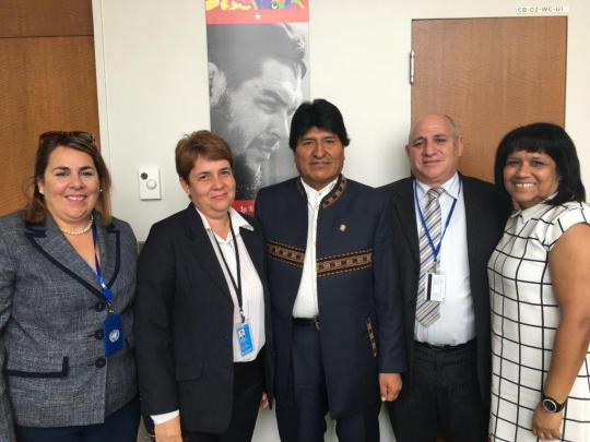 La delegación de Cuba, encabezada por el Viceministro del Ministerio de Ciencia, Tecnología y Medio Ambiente de Cuba (CITMA), José Fidel Santana Nuñez, participó hoy en la inauguración de dicha Conferencia. La apertura del Debate General tuvo entre sus oradores principales al Presidente de Bolivia, Evo Morales, quien acompañado por otros representantes del Estado Boliviano sostuvo un breve y amistoso diálogo con el Viceministro cubano y su delegación. Durante el encuentro se recordó al Líder histórico de la Revolución cubana Comandante Fidel Castro Ruz y su legado histórico.