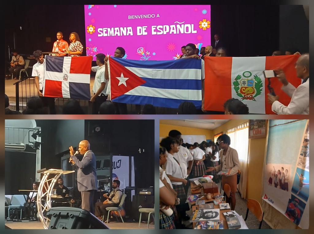 Puerto España, 18 de octubre de 2025. Como parte de la Jornada de la Cultura Cubana y en coordinación con las representaciones diplomáticas de México, Panamá y República Dominicana, la Embajada de Cuba tuvo una destacada participación en la Semana del Español, celebrada en la escuela Open Bible High School, en San Fernando.