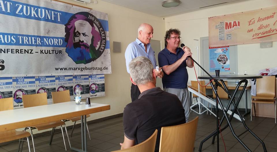 TRIER, 5 de mayo de 2018. El embajador de Cuba en Alemania Ramón Ripoll Díaz asistió a la Conferencia “Marx tiene futuro”, organizada por el Partido Comunista Alemán (DKP) y la Juventud Socialista Obrera Alemana (SDAJ), que se realizó el sábado 5 en horas de la tarde, en homenaje al bicentenario de Carlos Marx, en su ciudad natal Trier y que fue presidido por Patrik Koebele que ostenta la presidencia del DKP.