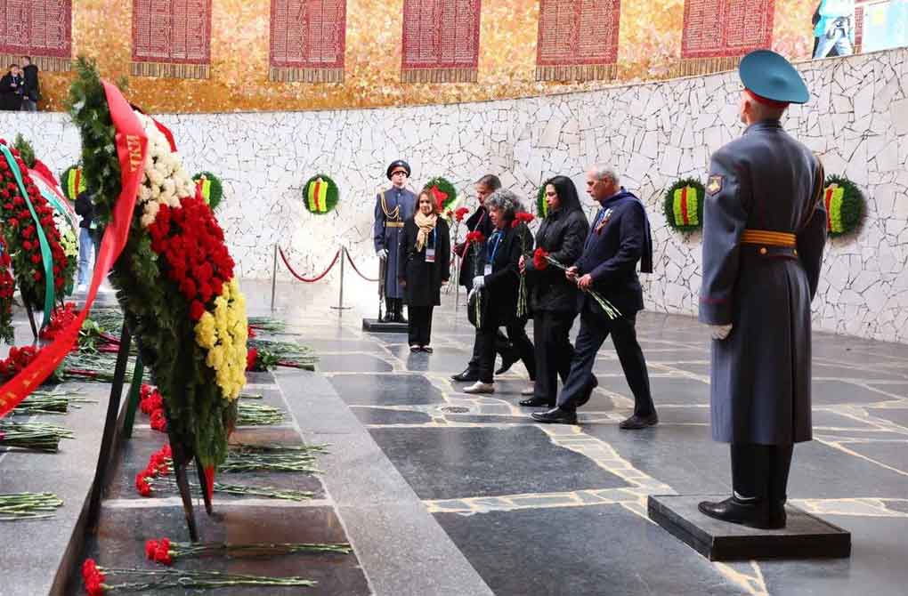 Durante su estancia en esta ciudad, la representación del órgano supremo del poder del Estado ha sostenido encuentros bilaterales con otras delegaciones y rindió homenaje a los caídos en el complejo monumentario “La Madre Patria llama”, donde apreció el espectáculo Luces de la Victoria, que refleja pasajes de la Gran Guerra Patria. (Embacuba Rusia)